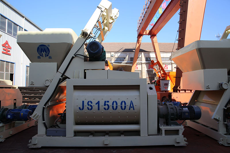 JS1500混凝土攪拌機是由上料、攪拌、卸料、供水、電氣等部分組成。