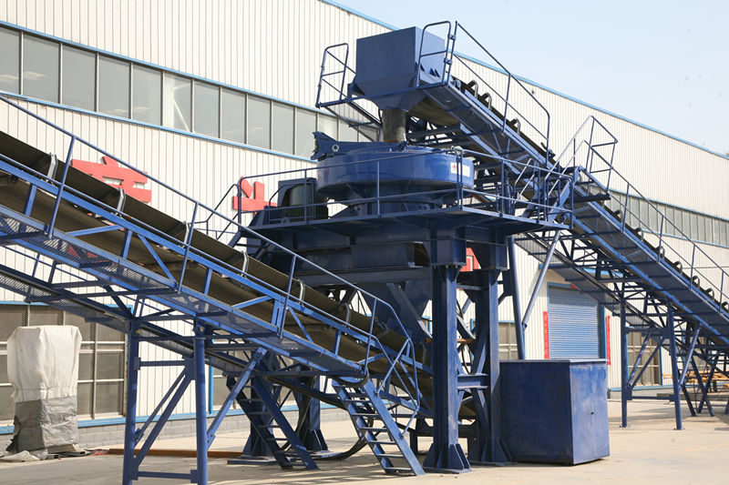 ZS系列制砂機我公司與德國礦山破碎企業(yè)技術(shù)合作,吸納中德設(shè)計理念,綜合市場需求和現(xiàn)場生產(chǎn)經(jīng)驗,打破常規(guī)制砂機功率大、設(shè)備笨重、產(chǎn)量不穩(wěn)定、投資收益低等弊端;我公司研發(fā)的制砂機利用轉(zhuǎn)子在高速旋轉(zhuǎn)時的離心力沖擊作用,將進入腔體的物料經(jīng)拋料口拋出后碰撞擊打到環(huán)形襯板,然后物料反彈回程中,與其他物料再次相互撞擊從而形成物料的破碎。破碎后的混合物料經(jīng)出料口由皮帶輸送機輸送到振動篩,再由振動篩進行分級篩分后,符合要求的成品由成品皮帶輸送機輸送到成品料堆,不符合要求的物料由返料皮帶輸送機返回到制砂機進行再次破碎,由此構(gòu)成閉路循環(huán)系統(tǒng)。